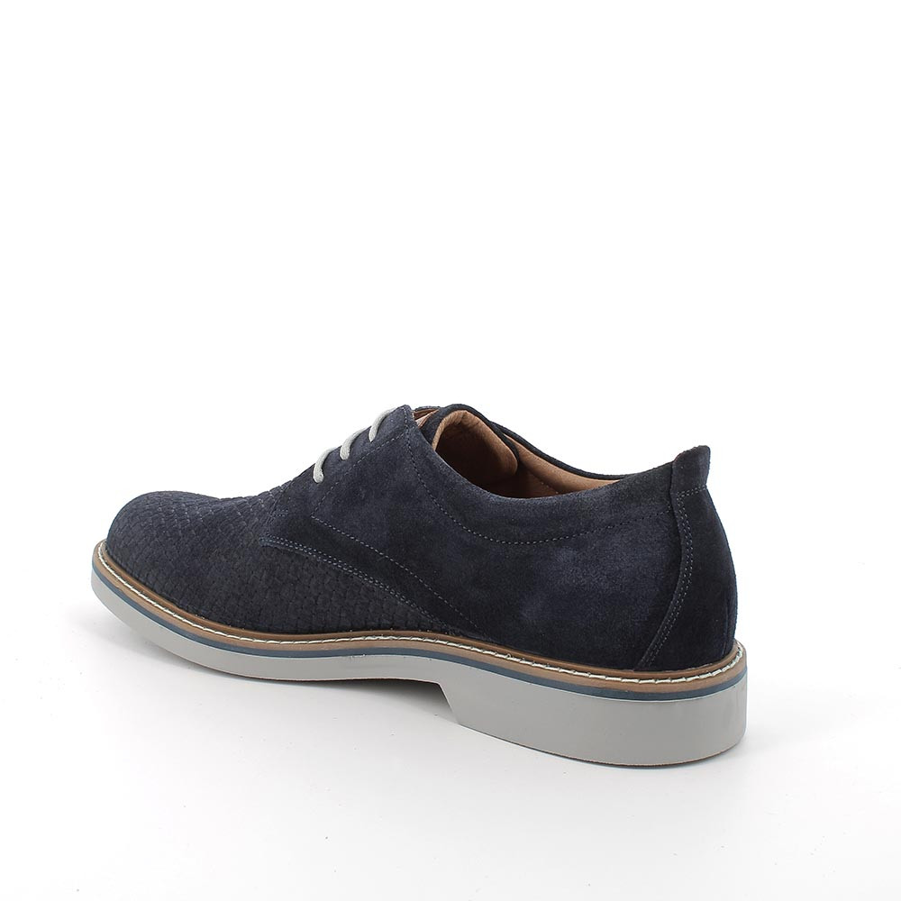Estos zapatos modelo derby de estilo oxford están realizados con suave piel ante y tienen una suela de doble color para un look joven y dinámico. Prácticos y versátiles, se adecuan fácilmente a vaias ocasiones de uso y donan un toque de estilo a tu atuendos. El forro de piel permite disfrutar el máximo bienestar y confort excelente. La plantilla anatómica es extraíble y está recubierta de piel para asegurar transpirabilidad e higiene.