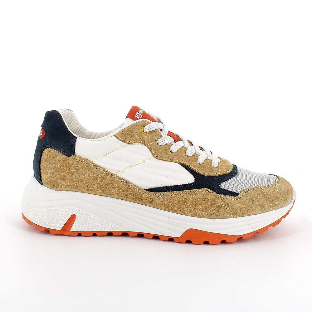 Zapatillas deportivas de inspiración running que conjugan la actitud deportiva con el espíritu urbano. Estos zapatos muestran claramente sus características de comodidad y ligereza gracias a la atenta combinación de los materiales y el diseño de la suela, elevada en la parte trasera y por consiguiente de gran confort. Tienen un importante acolchado que protege el pie al caminar y un forro de suave tejido técnico. La plantilla extraíble de espuma memory está recubierta de piel y asegura una correcta amortiguación, protegiendo al pie en el apoyo.