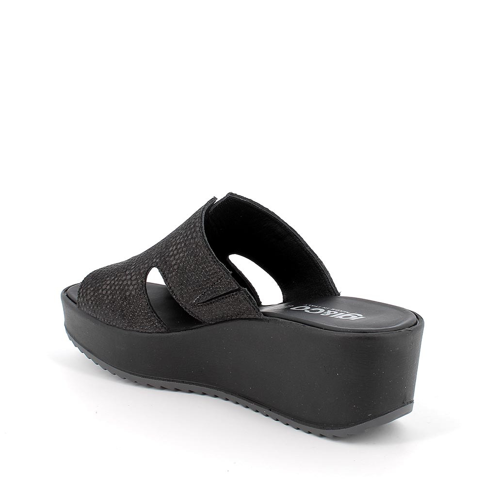 Sandalia de cuña de piel de señora negro iridiscente