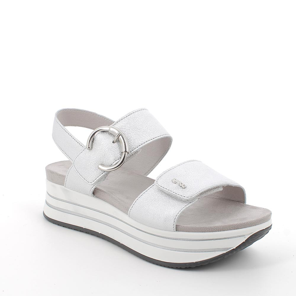 Sandalia de cuña de piel de señora plata