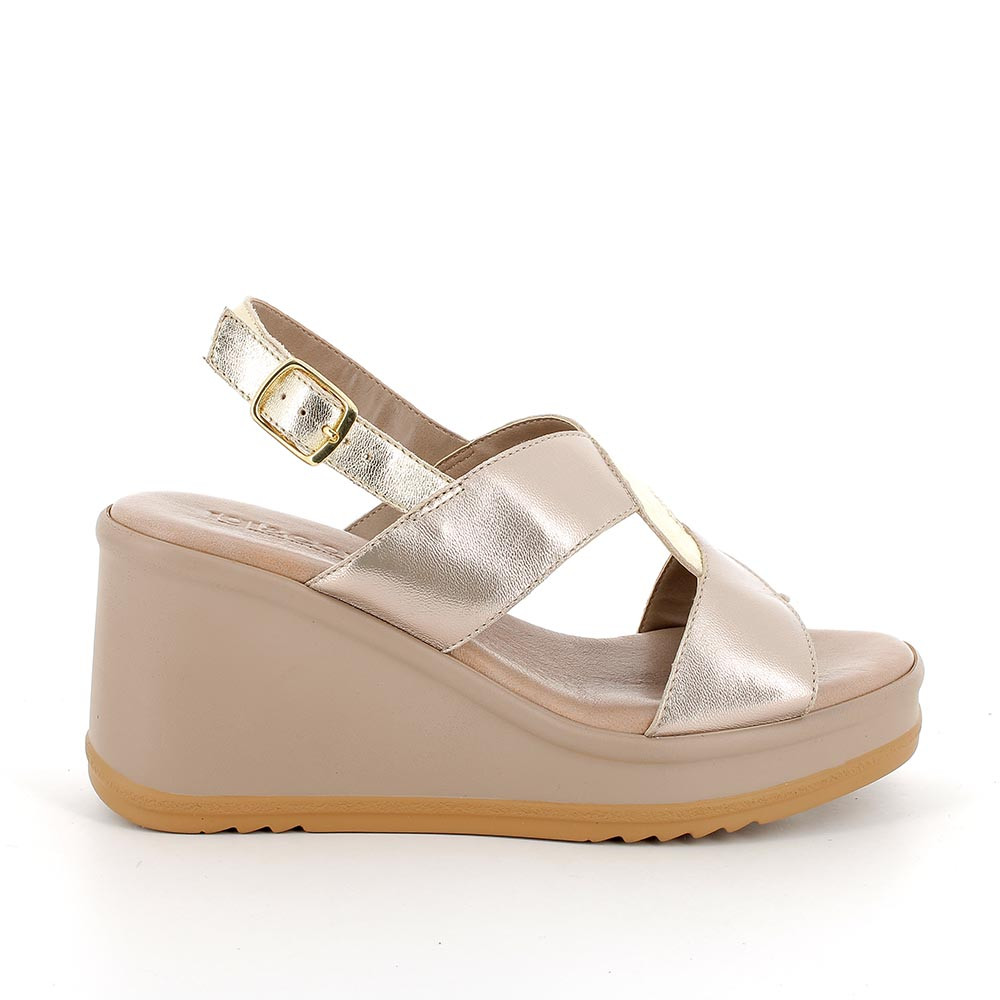 Para la mujer que ama la altura, pero busca un apoyo seguro y estable, estas sandalias de cuero son la elección correcta. Elegantes y de tendencia, cuentan con un diseño atractivo y actual con el que combinan materiales de alta calidad. Este modelo de cuña le dará el toque justo a tus outfits y te sorprenderá por la ligereza de la suela. Para que puedas llevarlas durante muchas horas, la plantilla de piel ha sido equipada con un acolchado viscoelástico con una capacidad de amortiguación absoluta.