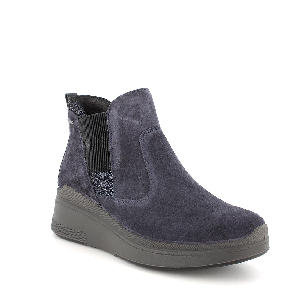 Botines de mujer hasta el tobillo, fabricados en ante con detalles de estampado animal. El detalle estiloso de la banda elástica y la cremallera son también elementos funcionales que facilitan las tareas diarias. La suela es relevante y proporciona unos centímetros extra, además también es muy ligera y no obstaculiza los movimientos. Este calzado está equipado con una plantilla extraíble de piel que asegura una higiene total."