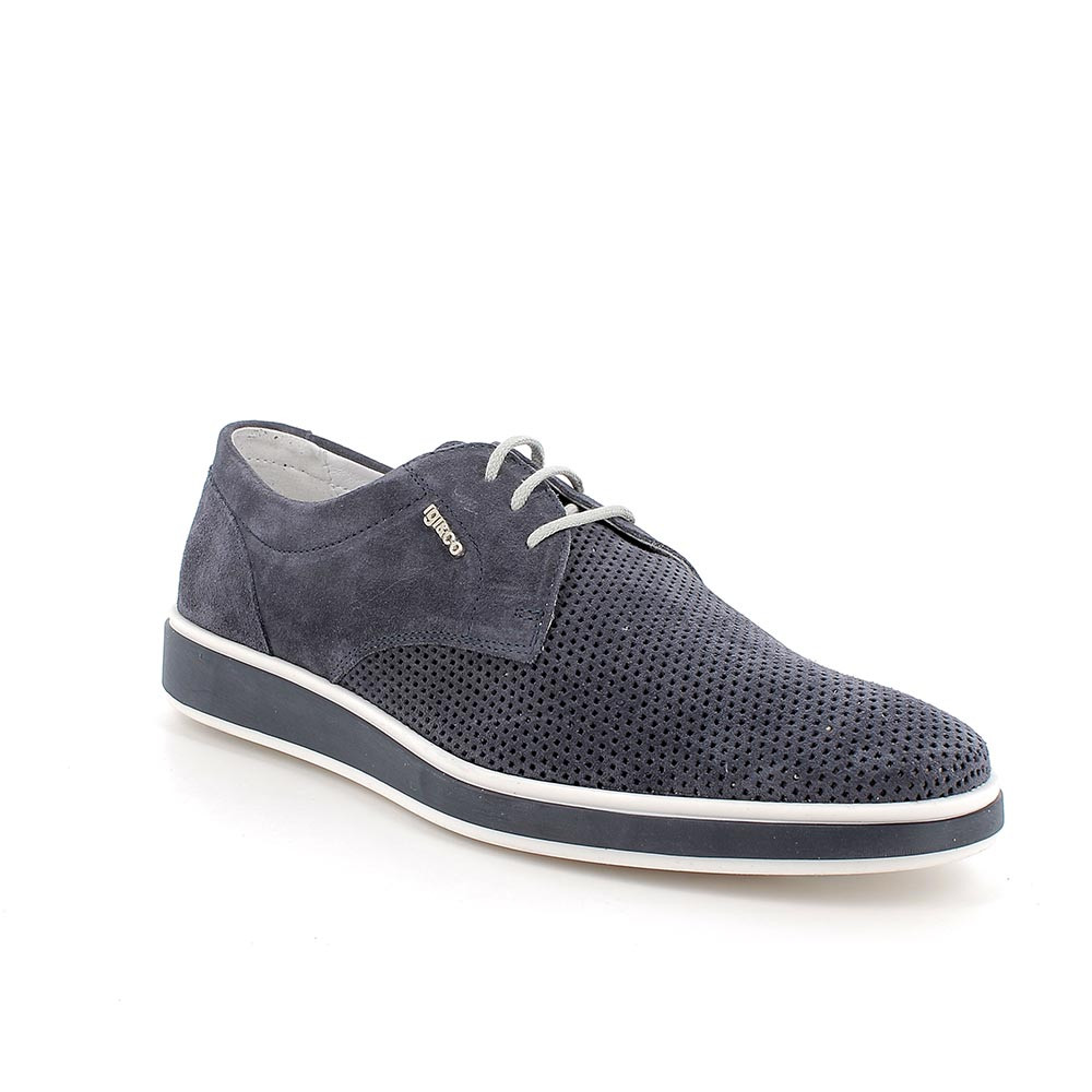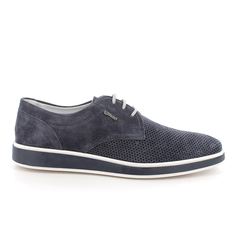 zapato de caballero con cordón, en piel, azul vaquero
