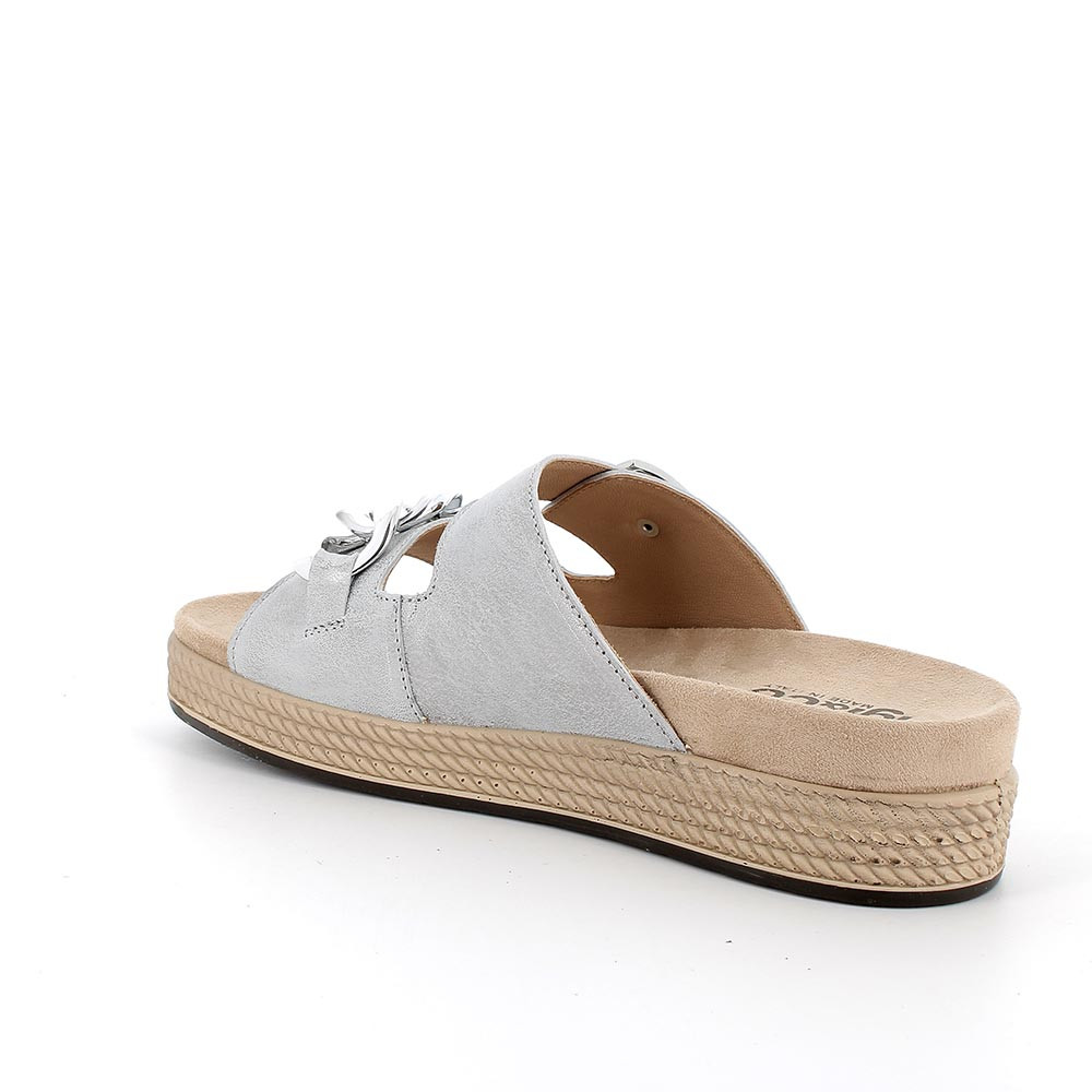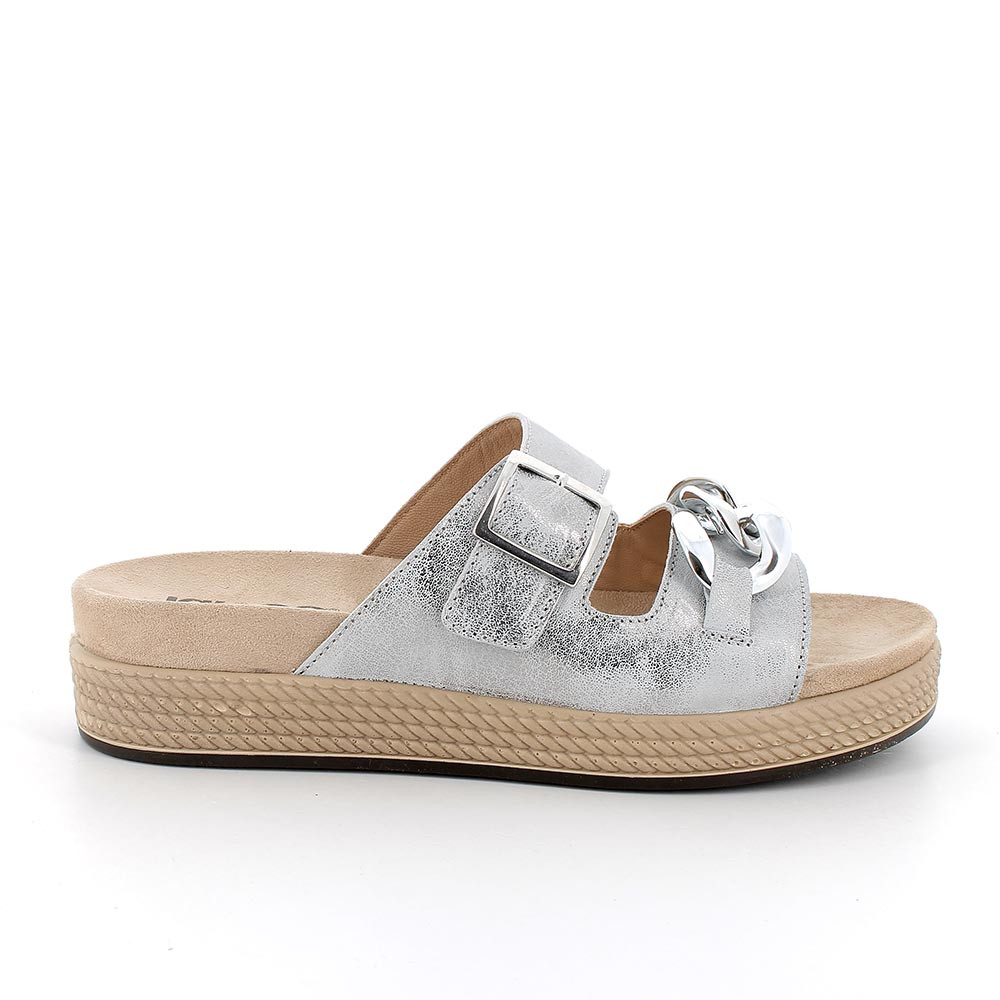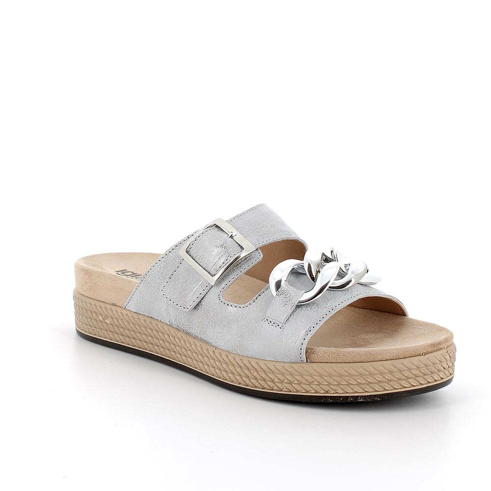 Sandalias de aspecto completamente veraniego gracias a la piel utilizada para la parte superior, el adornode cadena en la banda y el diseño especial entrelazado de la suela. Una combinación perfecta que da personalidad y carácter a este calzado con una silueta minimalista. Se combinarán perfectamente con tus conjuntos casuales y contemporáneos. La plantilla está contorneada para recibir y abrazar el pie dando una agradable sensación de confort.