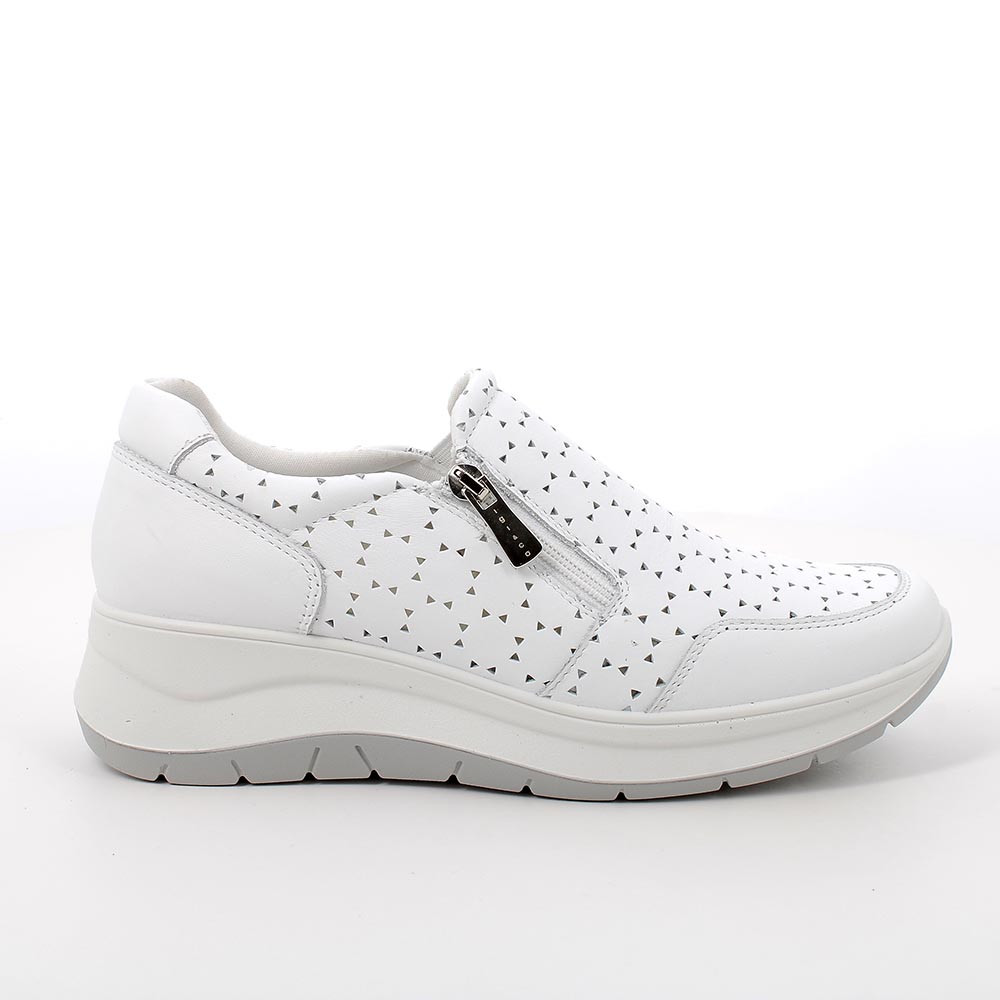 Estas zapatillas deportivas representan un híbrido entre las zapatillas y las slip on. Sin cordones, están equipadas con un refuerzo elástico interior y una cremallera externa que hacen que sea muy fácil de poner y quitar. La línea de estos zapatos es esencial y combina muy bien con la peculiaridad de la piel suave utilizada. La suela tiene altas dotes de ligereza y flexibilidad. La plantilla anatómica es extraíble y revestida en piel para garantizar transpirabilidad e higiene.