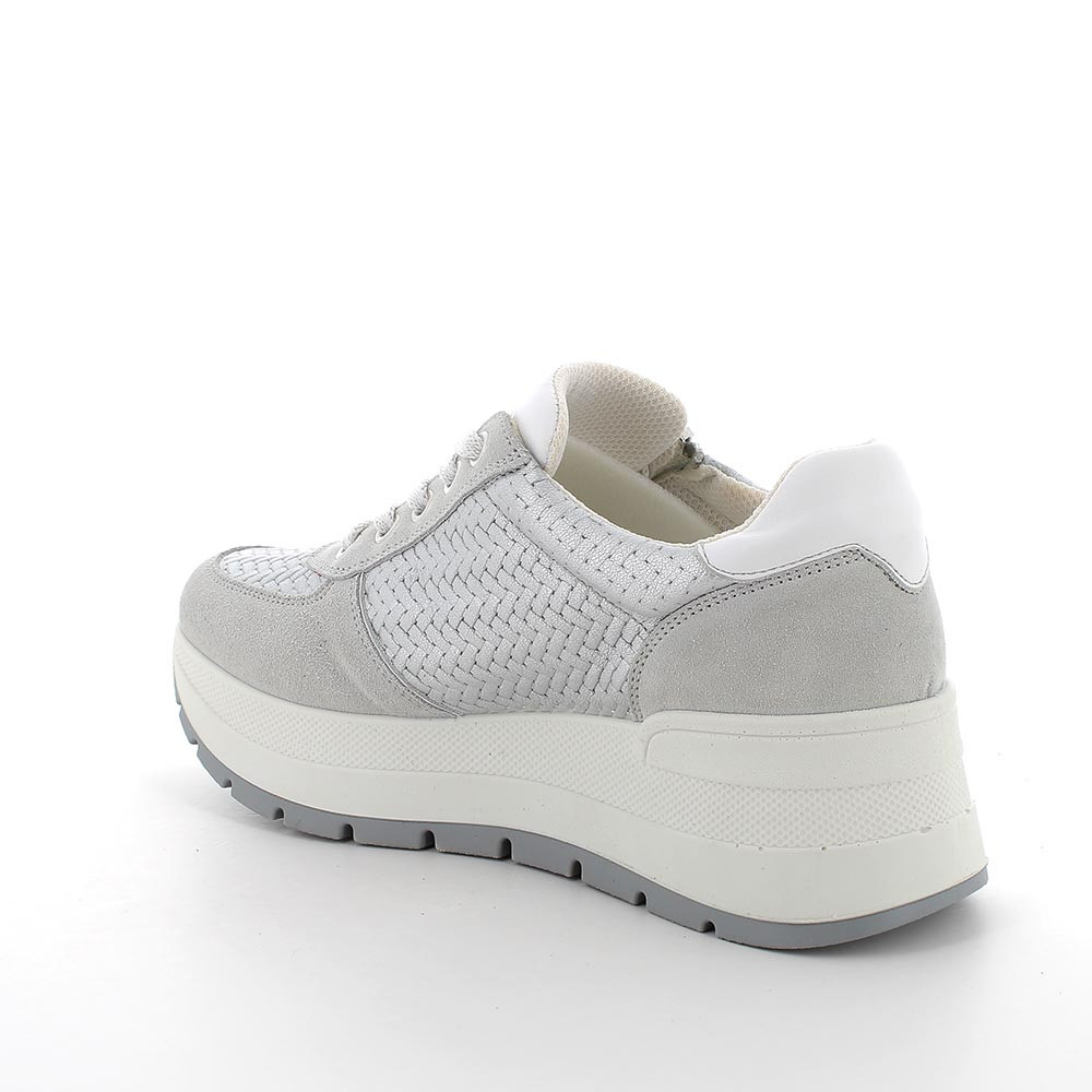 Deportivo con cuña para mujer blanco y plata con cremallera