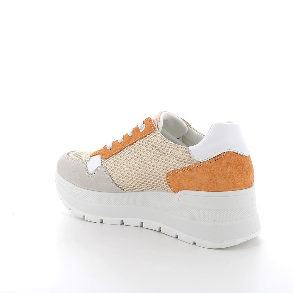 Deportivo con cuña para mujer beige y amarillo con cordones