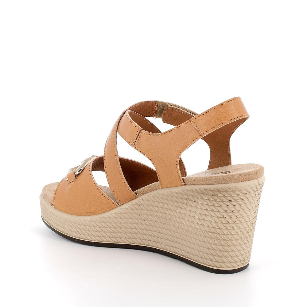 Las sandalias con cuña interpretan el deseo de libertad típico de los años 70, y desde entonces se repiten cada verano. Este modelo con suaves bandas cruzadas en la parte delantera, se regula gracias al cierre de velcro en el tobillo fijado con un taco elástico que favorecerá tus movimientos sin forzar. La suela, con efecto de cuerda típicamente veraniego, mantiene las características de ligereza a las que Igi&co te ha acostumbrado.