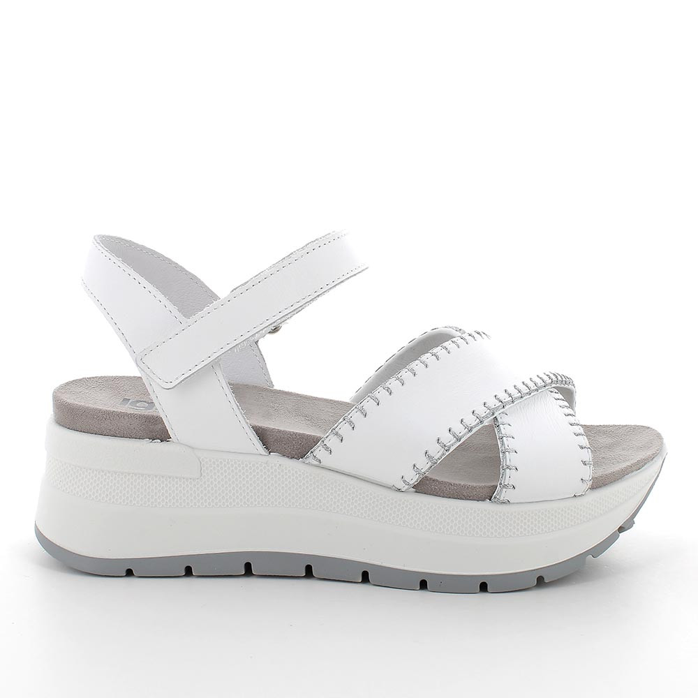 La originalidad de estas sandalias de mujer con tiras cruzadas en el empeine reside en los pespuntes a la vista en los bordes, que aportan un toque artesanal y original. Gracias a la plataforma y a la plantilla anatómica, estas sandalias son perfectas para largas caminatas o días activos.