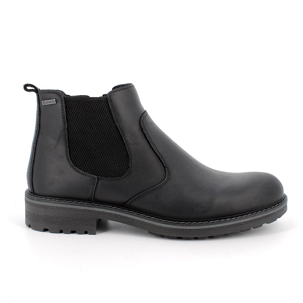 Botines chelsea con cremallera lateral de aspecto casual. Tienen tirador trasero para ayudar al ajuste. La forma es cómoda y la suela ligera y flexible. Hechos con tecnología GORE-TEX. La plantilla extraíble es de piel.