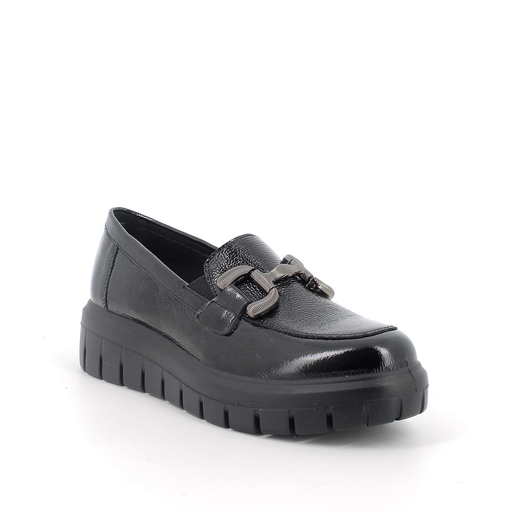 Mocasín de cuña para mujer negro con elástico