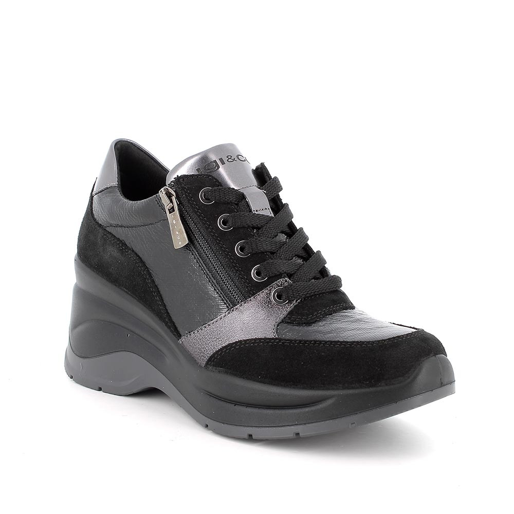 Deportivo con cuña para mujer negro con cremallera