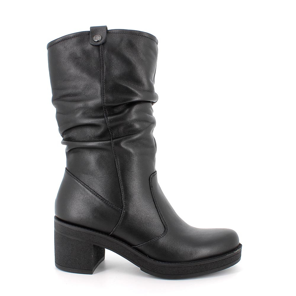 Suave piel para una bota alta con la caña de efecto fruncido que cubre la pantorrilla. Un aliado perfecto para llevar una falda en los días más fríos. El tacón es ancho y cómodo. La huella antideslizante completa el conjunto. Internamente tienen plantilla extraíble recubierta de piel.