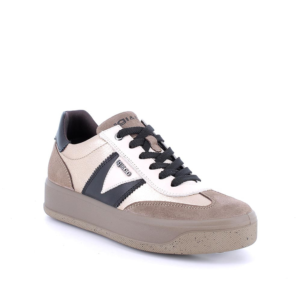 Deportivo para mujer platino y beige con cordones