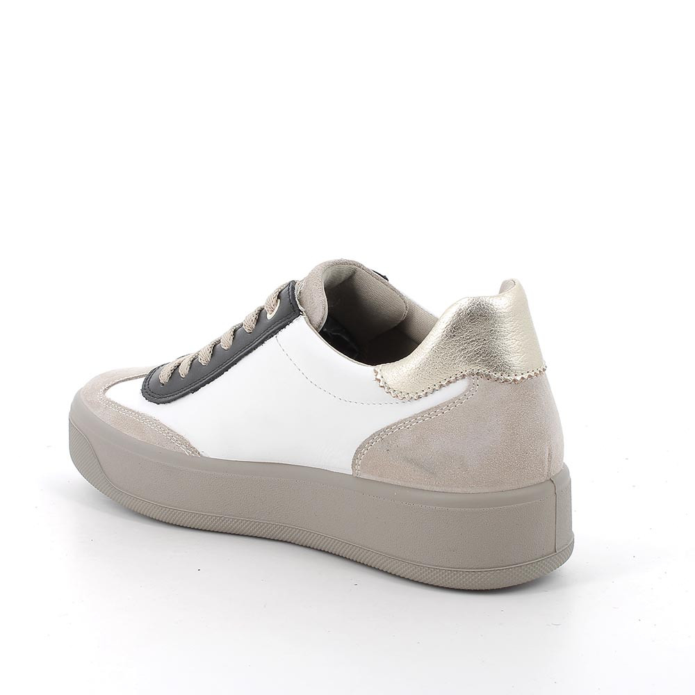 Con mucha fuerza y estilo, estas zapatillas deportivas son pura energía urbana. La combinación de colores, los detalles metalizados y el icónico motivo en contraste lateral aportan carácter y originalidad. La suela, alta y compacta pero súper ligera, añade un toque moderno y garantiza una pisada muy cómoda. Perfectas para completar tus looks con un toque deportivo, pero siempre chic.