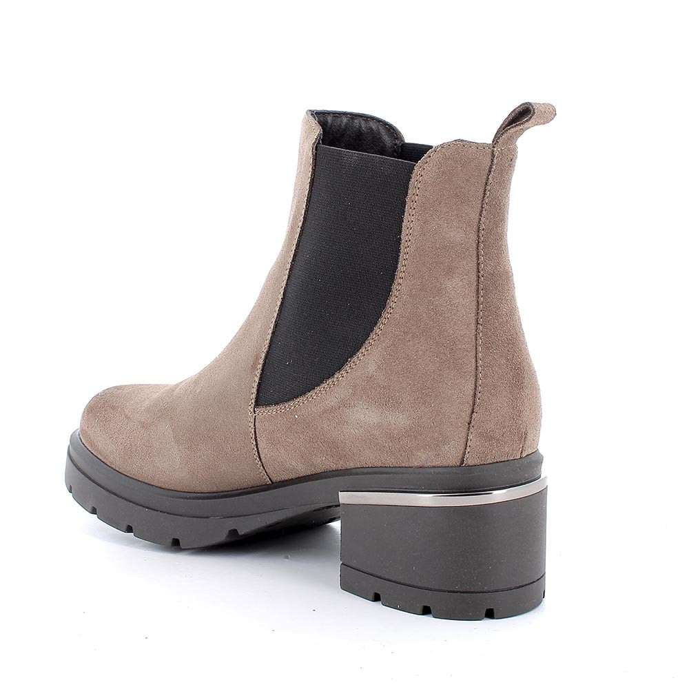 Media bota de tacon para mujer beige con elástico