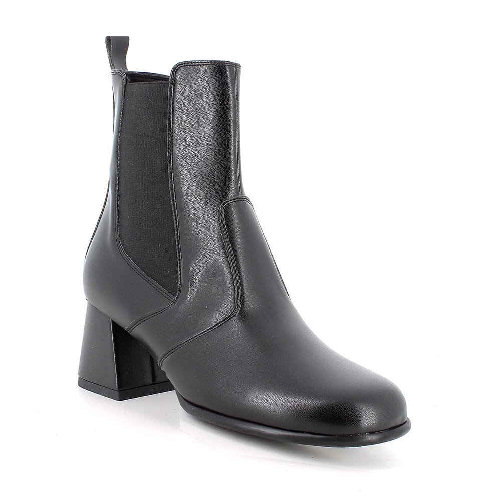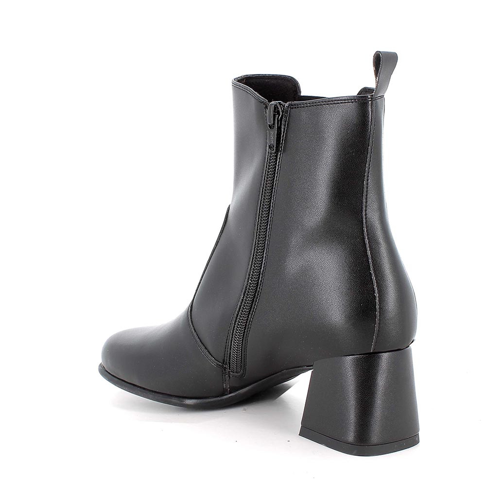 Botines de tobillo de espíritu decidido y contemporáneo. El diseño esencial se realza con un tacón ancho y cuadrado que aporta estabilidad y carácter. La banda elástica lateral garantiza un ajuste práctico y cómodo, mientras que la cremallera interior facilita el calce. Perfectos para acompañar tus looks diarios con un toque de sobria elegancia.