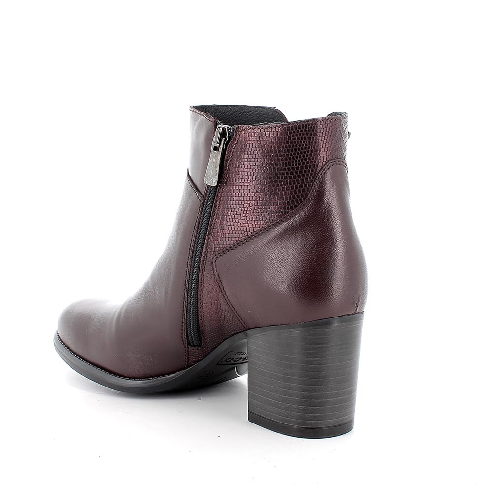 Media bota de tacon para mujer burdeos con cremallera