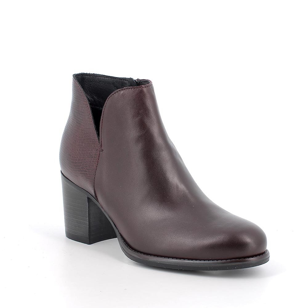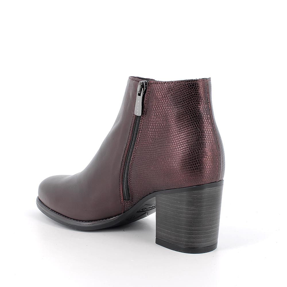 Botines bajos de mujer con un diseño que muestra el maléolo y los hace aún más cómodos cuando el tobillo se dobla. Tienen un tacón muy cómodo que permite usarlos sin esfuerzo durante todo el día. La punta es redondeada, por lo que hay más espacio para los dedos. Internamente están totalmente revestidos de piel.
