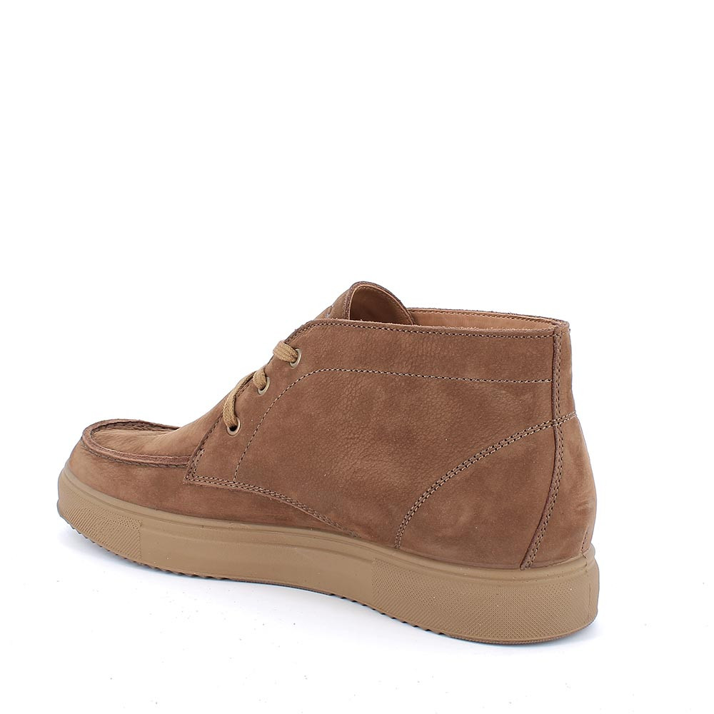 Estos botines de piel suave están caracterizados por le cosido en la pala para un look casual y desenvuelto.La suela de casco, ligera y felxible, exhalta la sensación de confort. La lazada con tres ojales permite un ajuste fácil y rápido. La plantilla extraíble de espuma memory está recubierta de piel y asegura una correcta amortiguación, protegiendo al pie en el apoyo.