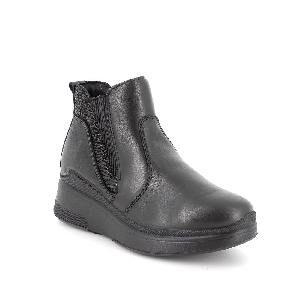 Si buscas botas de cuña, significa que para tus días llenos de compromisos quieres elegir la máxima comodidad. Este modelo es la solución ideal. El diseño de la parte superior y la suela es dinámico y contemporáneo. El detalle de la inserción en piel con efecto metal añade un toque de luminosidad.