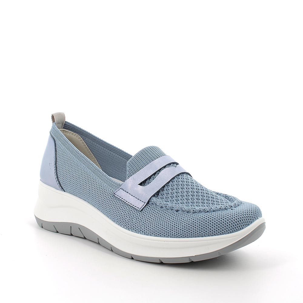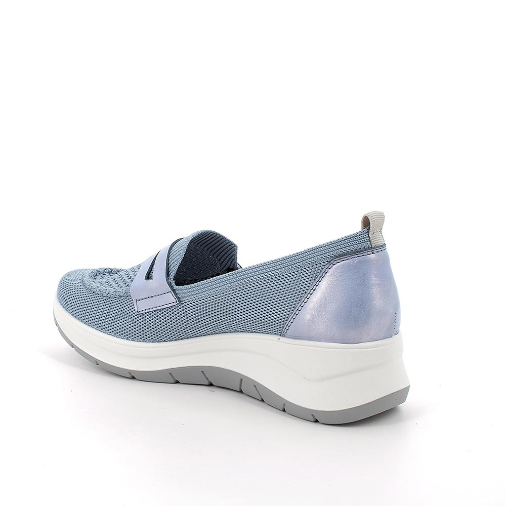 Mocasín de cuña para mujer celeste con elástico