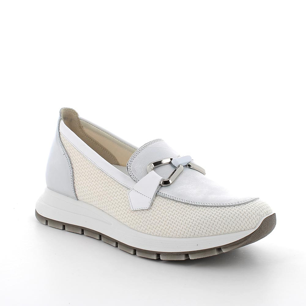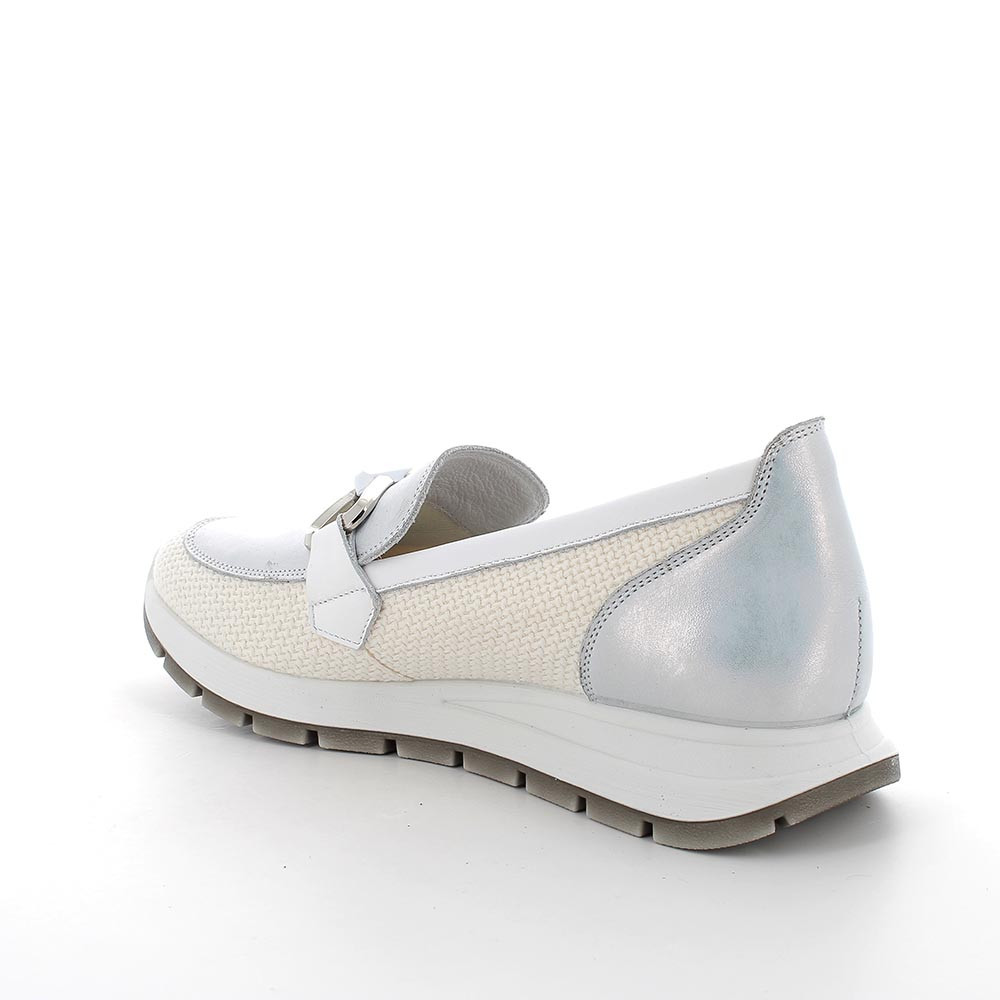 Mocasín para mujer plata y blanco
