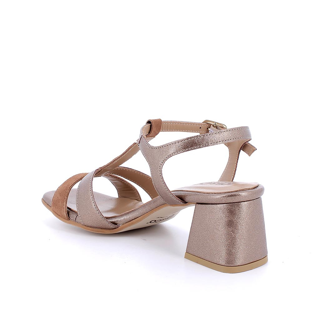 Sandalia de tacón para mujer marron y gris con hebilla