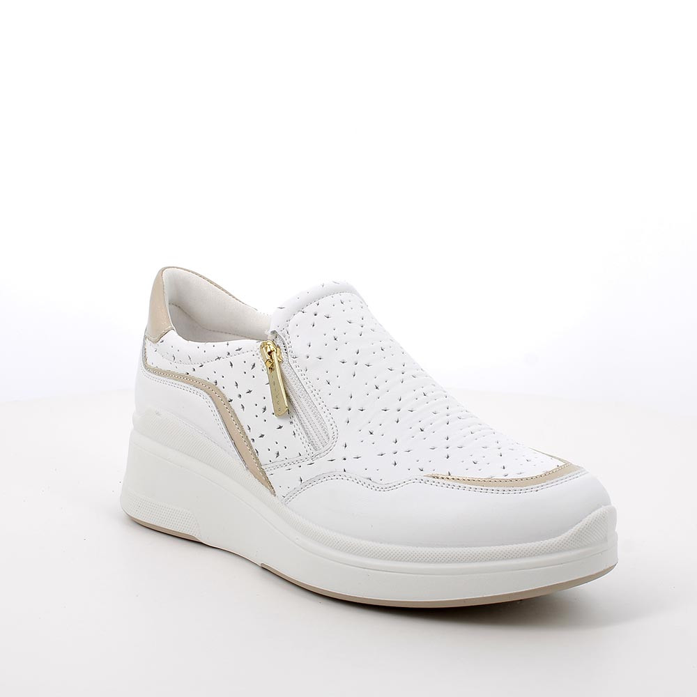Estas zapatillas deportivas representan un híbrido entre las zapatillas y las slip on. Sin cordones, están equipadas con un refuerzo elástico interior y una cremallera externa que hacen que sea muy fácil de poner y quitar. La línea de estos zapatos es esencial y combina muy bien con la peculiaridad de la piel suave utilizada. La suela tiene altas dotes de ligereza y flexibilidad. La plantilla anatómica es extraíble y revestida en piel para garantizar transpirabilidad e higiene.