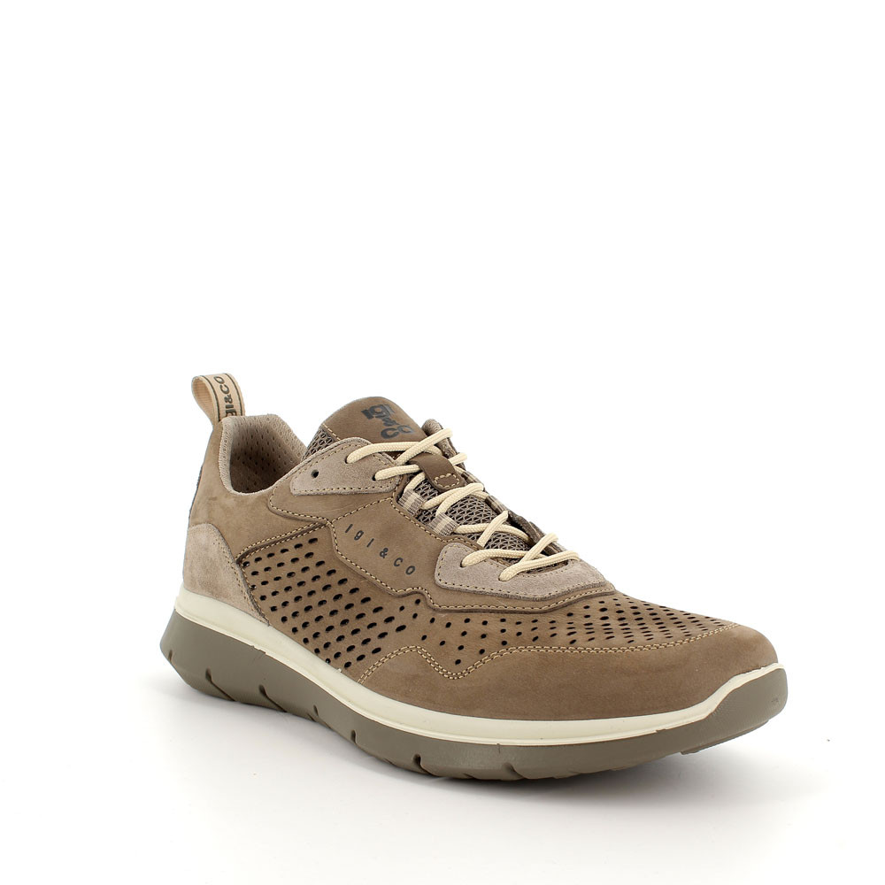 CHAUSSURE EN CUIR ET NUBUK DOUX AVEC UN LOOK TECHNIQUE. GRÂCE À LA PERFORATION SUR LA TIGE, CETTE CHAUSSURE GARANTIT UNE FRAÎCHEUR PARTICULIÈRE. LE RÉGLAGE EST FACILITÉ PAR LA FERMETURE À LACETS ET L'UTILISATION EST FACILITÉE PAR LA TIGE D'ATTACHE ARRIÈRE PERSONNALISÉE. LES ENCOCHES TRANSVERSALES ÉVIDENTES DE LA SEMELLE SONT CONÇUES POUR FAVORISER LA FLEXIBILITÉ ET ASSURER L'ADHÉRENCE AU SOL.