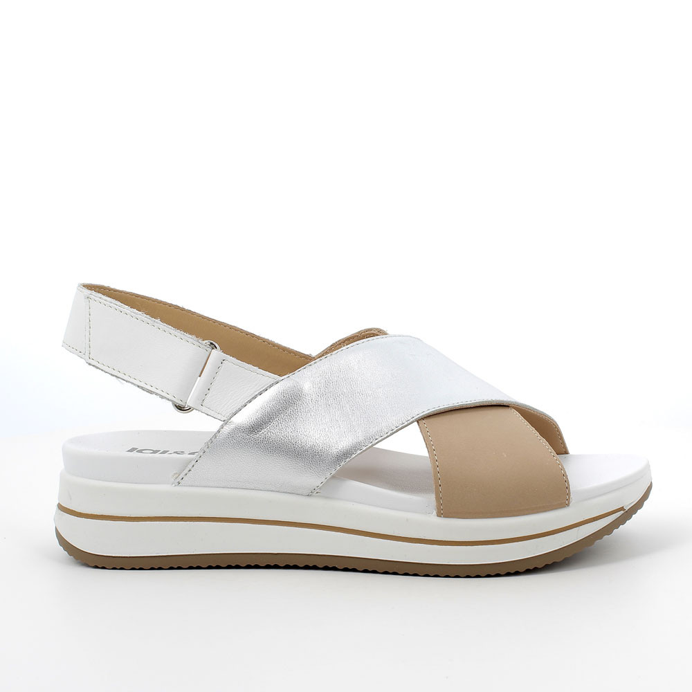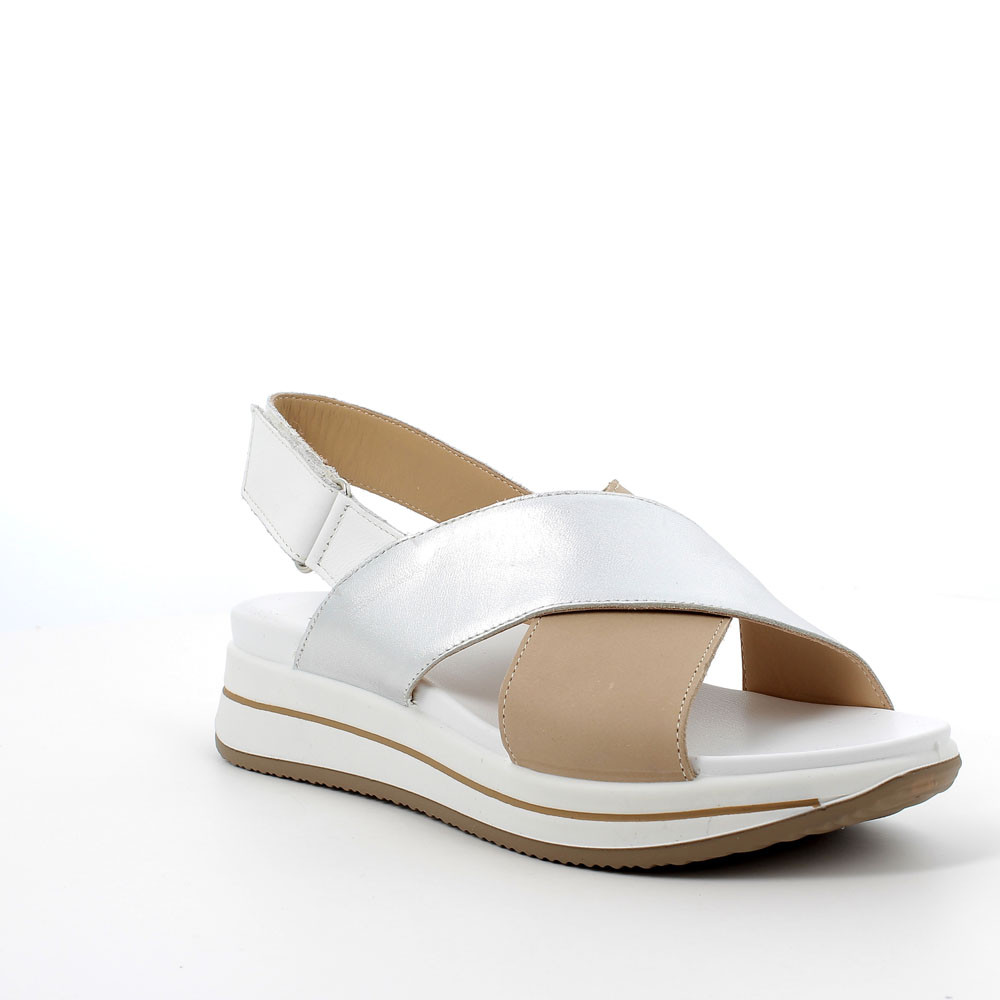 Sandale femme en cuir beige-argent
