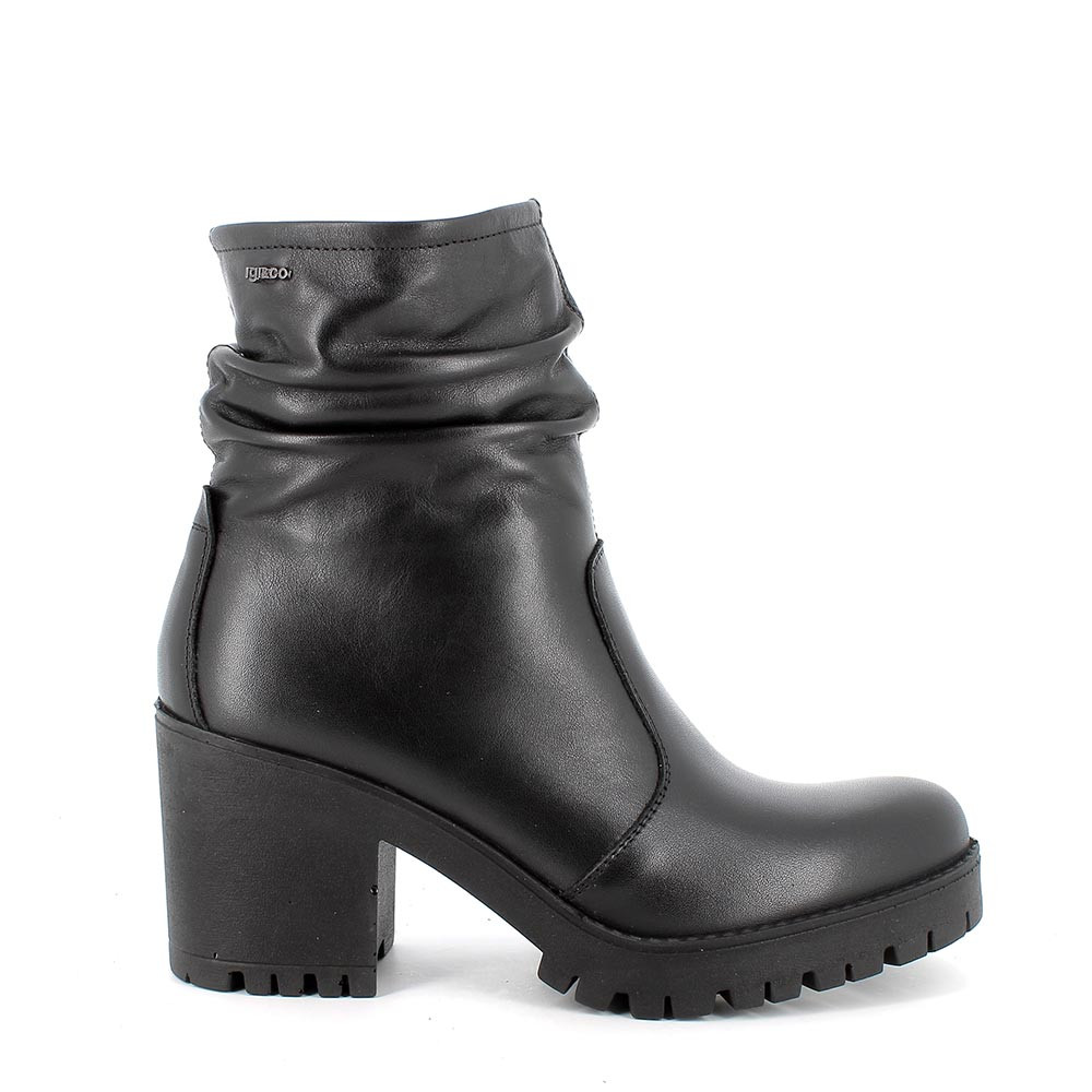 Ces bottines sont un véritable passe-par-tout pour les looks d’automne. Elles sont élégantes, féminines et attrayantes grâce à la jambe recourbée qui donne du caractère à l’ensemble du modèle. La semelle avec talon large et plate-forme avant amortit la rugosité du sol et maintient des caractéristiques élevées de légèreté assurant une flexibilité maximale.   La semelle intérieure anatomique est amovible et recouverte de cuir pour assurer la transpirabilité et l’hygiène.