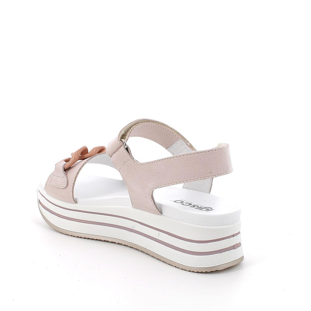 Sandale avec coin en cuir pour femme poudre