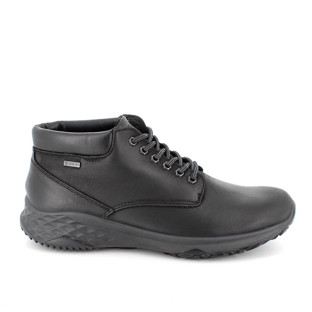 Bottines coupe derby en cuir avec des lignes simples et un haut niveau de confort. La tige est souple et enveloppe doucement le pied en le protégeant de l’humidité grâce à la doublure en GORE-TEX. La perforation particulière de la bande de roulement de la semelle rend ces bottes antidérapantes, donc parfaites pour l’hiver. La semelle amovible en mousse à mémoire de forme est recouverte de cuir et assure l’amorti en protégeant le pied du stress.