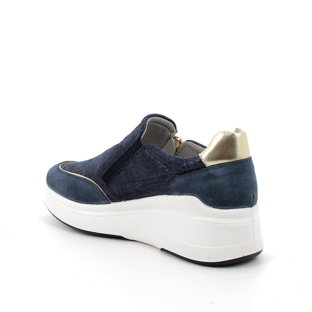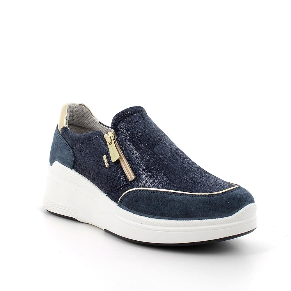 Ces chaussures de sport représentent un hybride entre les baskets et les slip-on. Sans liens, elles sont équipées d'un soufflet élastique interne et d'un zip externe qui permettent de les enfiler et de les enlever très facilement. La ligne de ces chaussures est essentielle et se marie très bien avec la particularité du cuir souple utilisé. La semelle présente de grandes qualités de légèreté et de flexibilité. La semelle intérieure anatomique est amovible et recouverte de cuir pour garantir transpirabilité et hygiène.