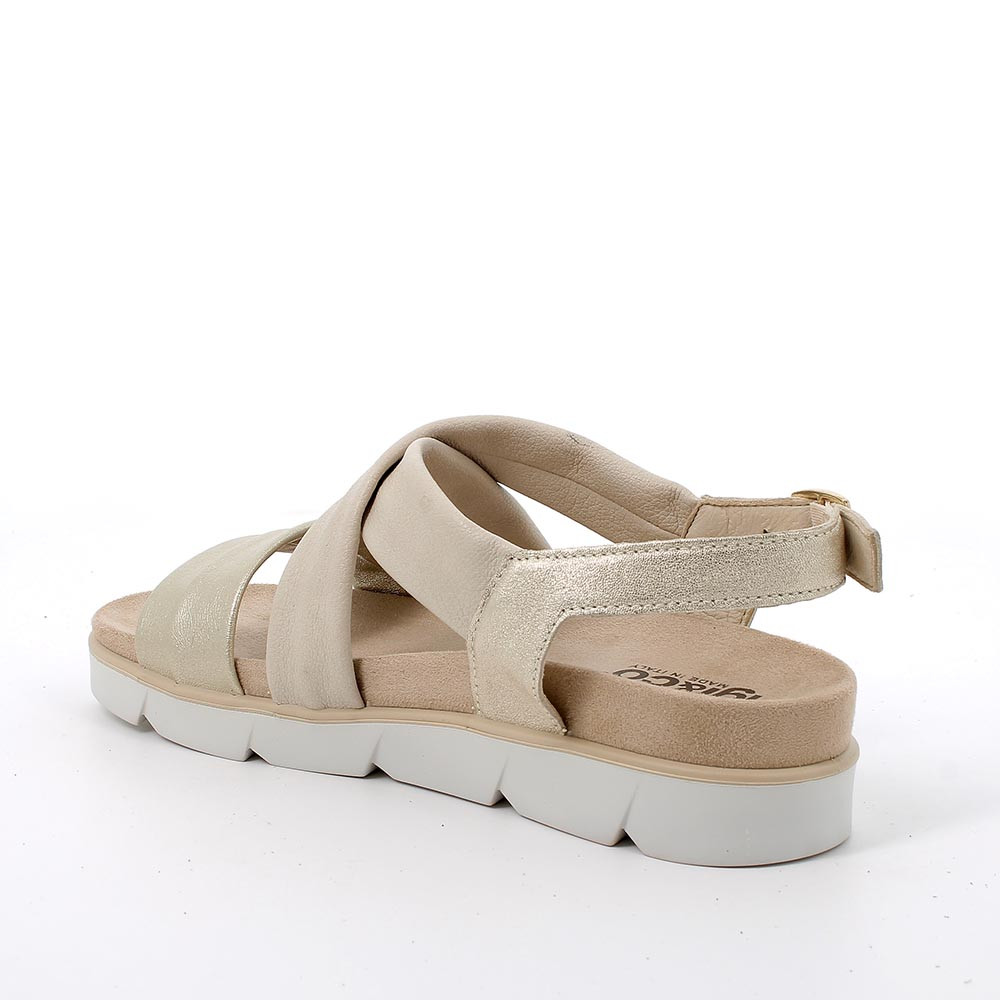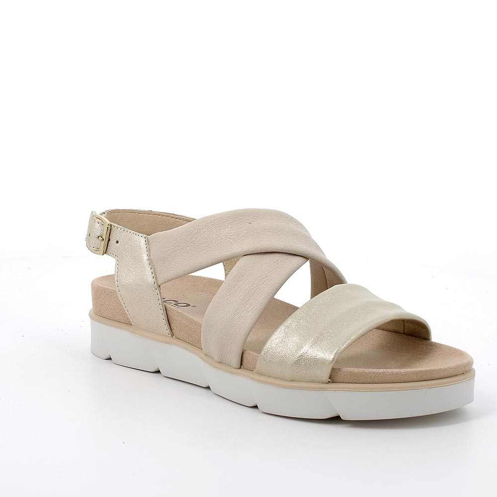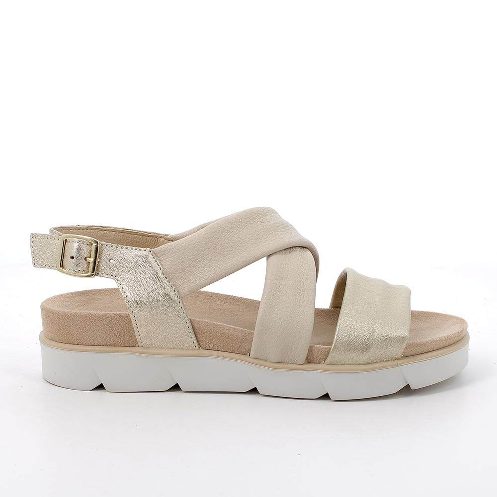 Sandales pour femmes fabriquées en combinant du cuir de haute qualité. Le design est conçu pour envelopper et protéger le pied. La boucle sur la cheville permet le réglage et est sécurisée grâce à un soufflet élastique qui suit délicatement vos mouvements. Le pied repose sur une assise plantaire profilée douce et accueillante et la semelle est légère et flexible.