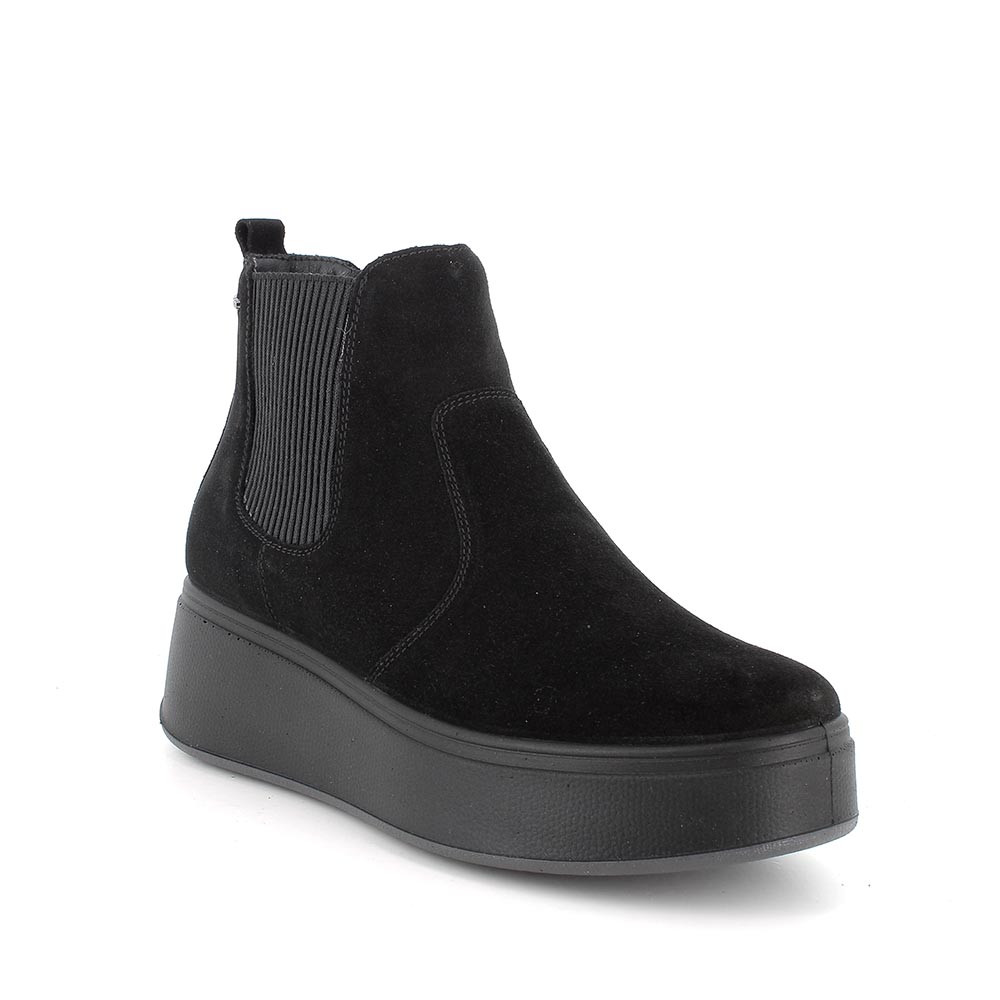 Bottines beatles avec coin et plateforme pour un confort supérieur et une isolation maximale du sol. Fabriquées en suède doux, elles s'enfilent en un instant grâce à la sangle arrière. La semelle intérieure anatomique peut être retirée pour une plus grande hygiène.