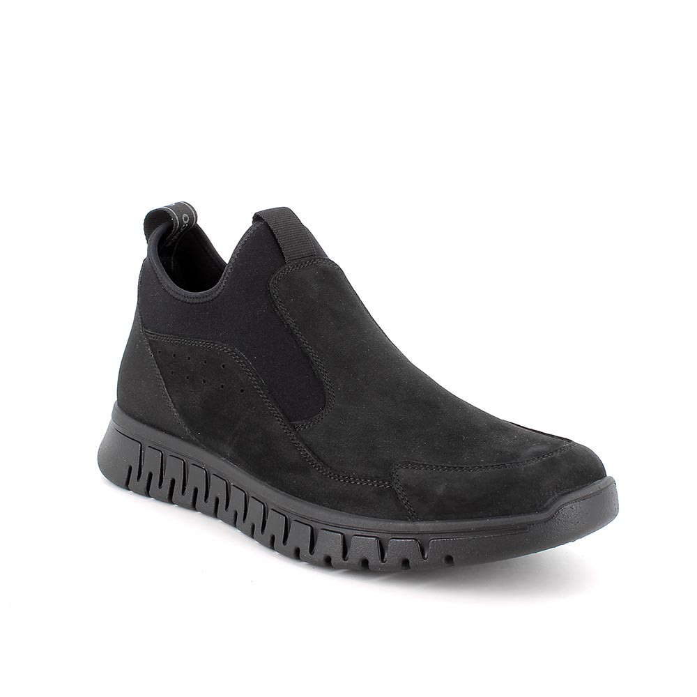 Slip on en matière technique stretch et cuir. Confort total et praticité maximale. La semelle au design contemporain augmente l'adhérence et la flexibilité. La semelle intérieure en cuir favorise la transpirabilité et est amovible.