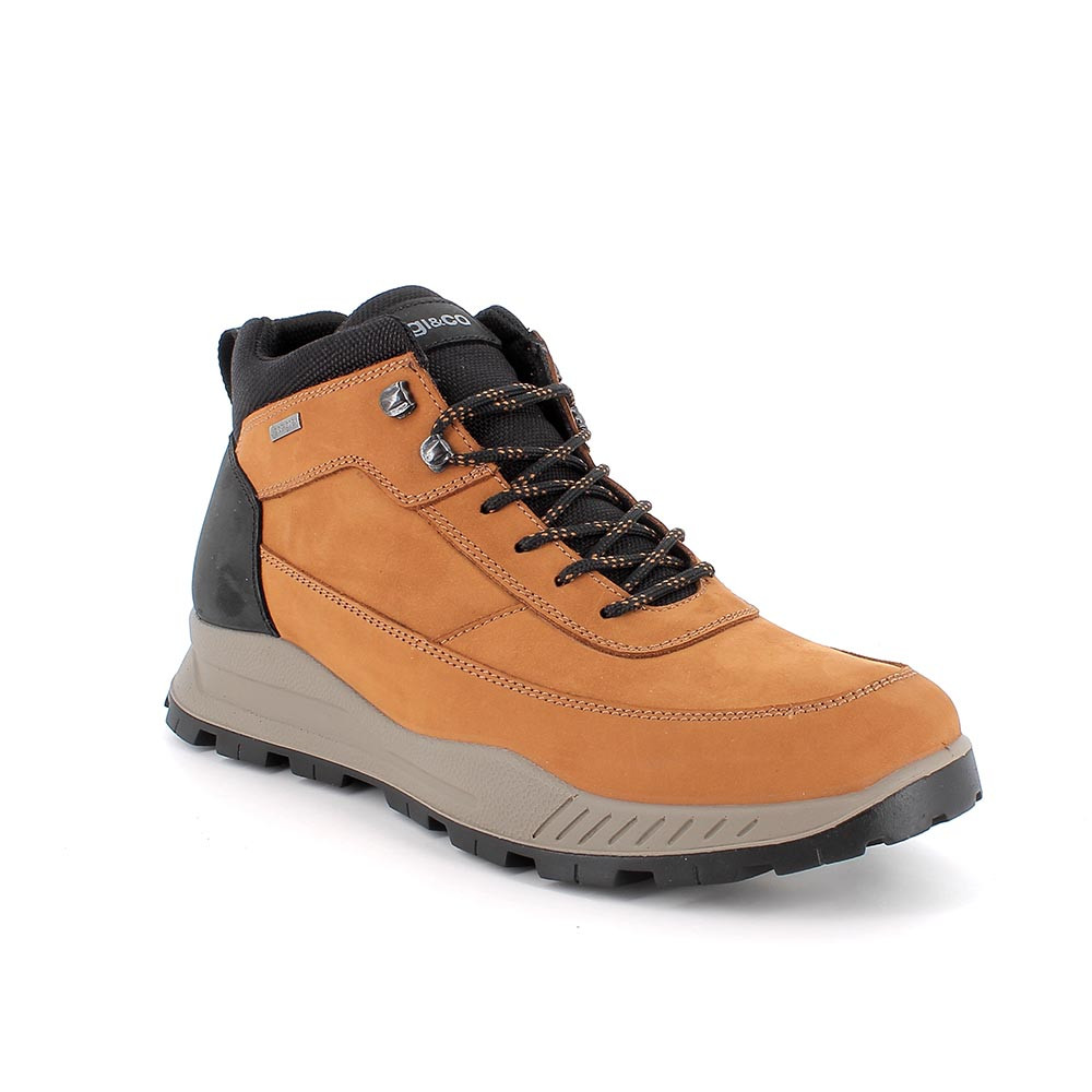 Bottines coupe derby en cuir avec des lignes simples et un haut niveau de confort. La tige est souple et enveloppe doucement le pied en le protégeant de l’humidité grâce à la doublure en GORE-TEX. La perforation particulière de la bande de roulement de la semelle rend ces bottes antidérapantes, donc parfaites pour l’hiver. La semelle amovible en mousse à mémoire de forme assure un bon amorti en protégeant le pied du stress.