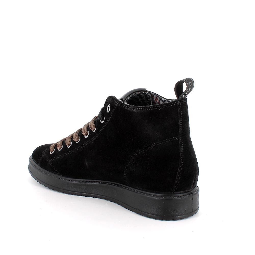 Chaussure en suède mi-hauteur avec des lignes essentielles qui protègent la cheville du froid et des intempéries. La doublure dans un tissu à motifs chauds donne une touche d’originalité discrète à ce bottillon minimal. La semelle à cuvette est légère et flexible et a une pointe arrondie pour laisser de la place aux orteils. La semelle amovible en mousse à mémoire de forme est recouverte de cuir et assure l’amorti en protégeant le pied du stress.