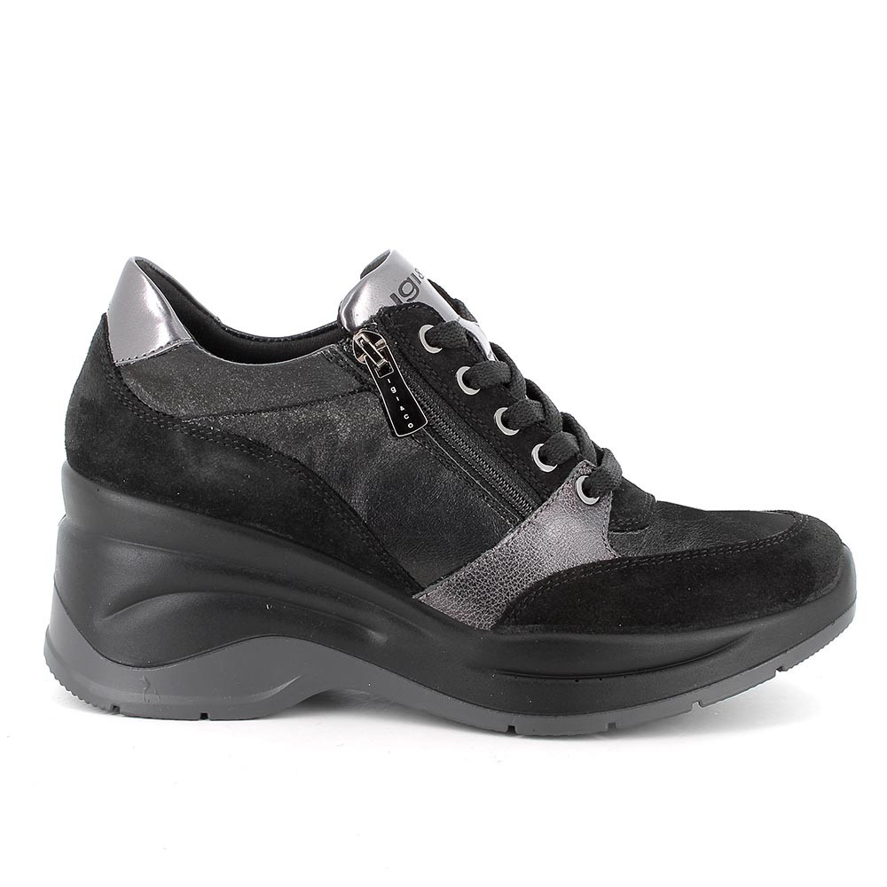 Ces baskets avec lacets et zip latéral, ont été interprétées dans un style dynamique et contemporain et peuvent donner une touche sprint à n'importe quelle tenue. La semelle compensée est très légère et offre une stabilité maximale. La semelle intérieure amovible en mousse à mémoire de forme est recouverte de cuir et assure un bon amorti tout en protégeant le pied du stress