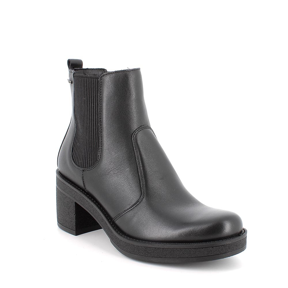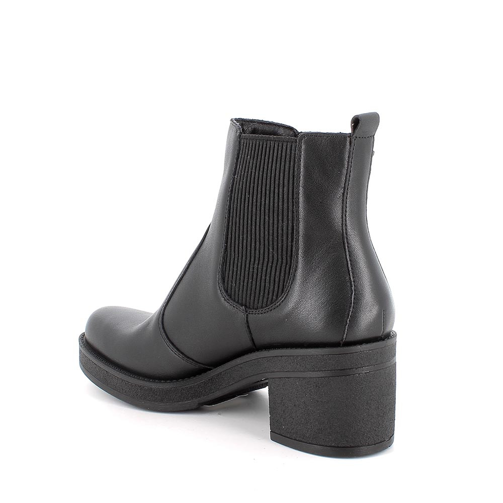 Ces bottines Chelsea pour femme sont confortables et pratiques grâce aux bandes latérales élastiquées typiques. La languette arrière permet de les enfiler encore plus rapidement. Elles sont équipées d'une semelle intérieure en cuir, typique des chaussures de qualité supérieure. Elles ont une semelle légère avec un talon large.