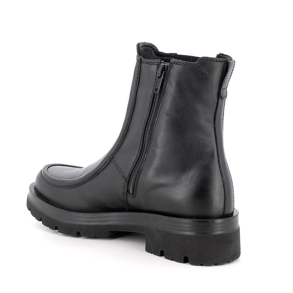 Une chelsea boot qui ne craint pas les comparaisons. Des lignes essentielles, une silhouette affirmée et une semelle au profil massif, mais très légères : ces bottines dégagent du caractère à chaque pas. L'élastique latéral et la fermeture éclair interne rendent l'enfilage pratique et personnalisé, tandis que la structure robuste garantit stabilité et adhérence sur toutes les surfaces. Minimalistes mais audacieuses, elles sont le mélange parfait entre style métropolitain et esprit urbain.
