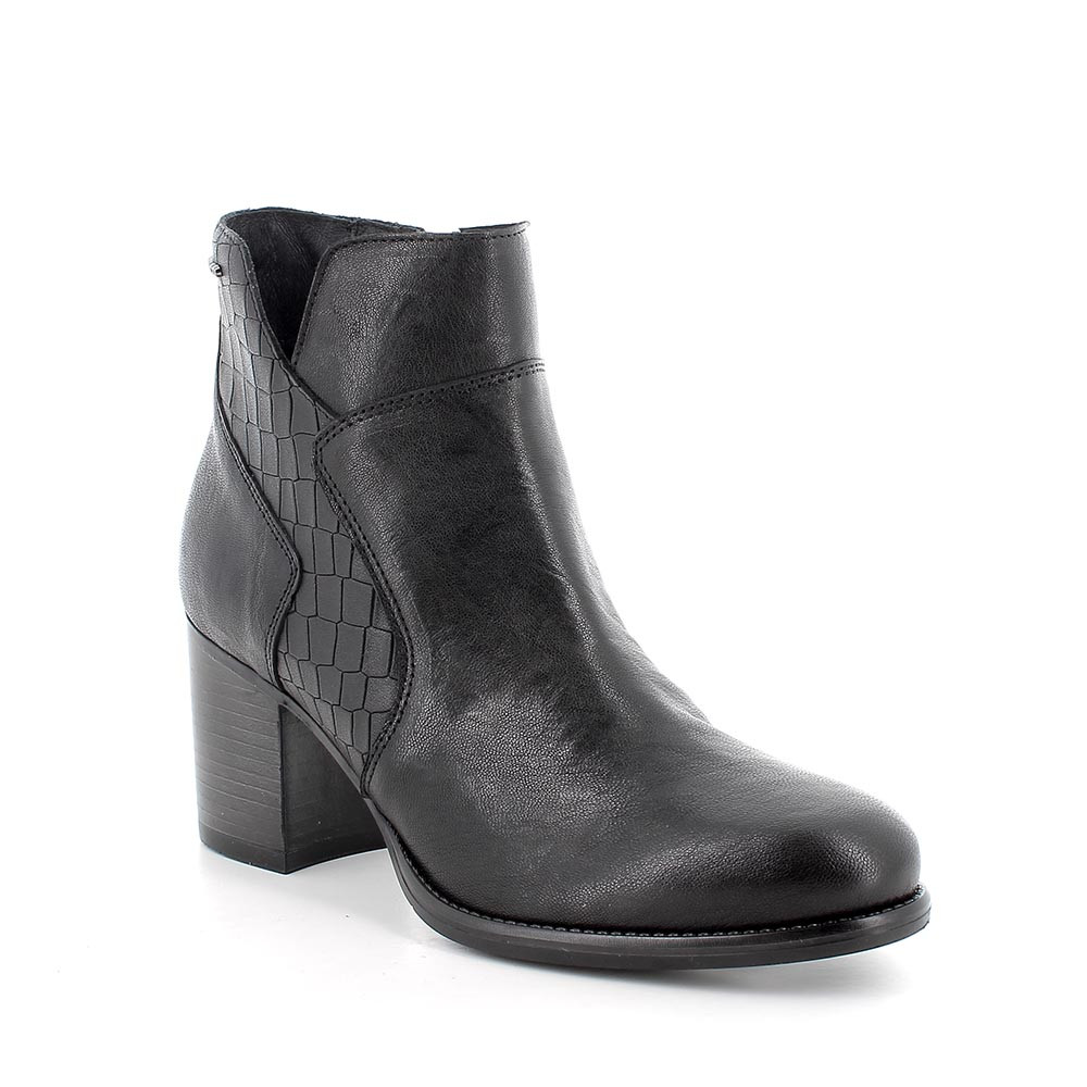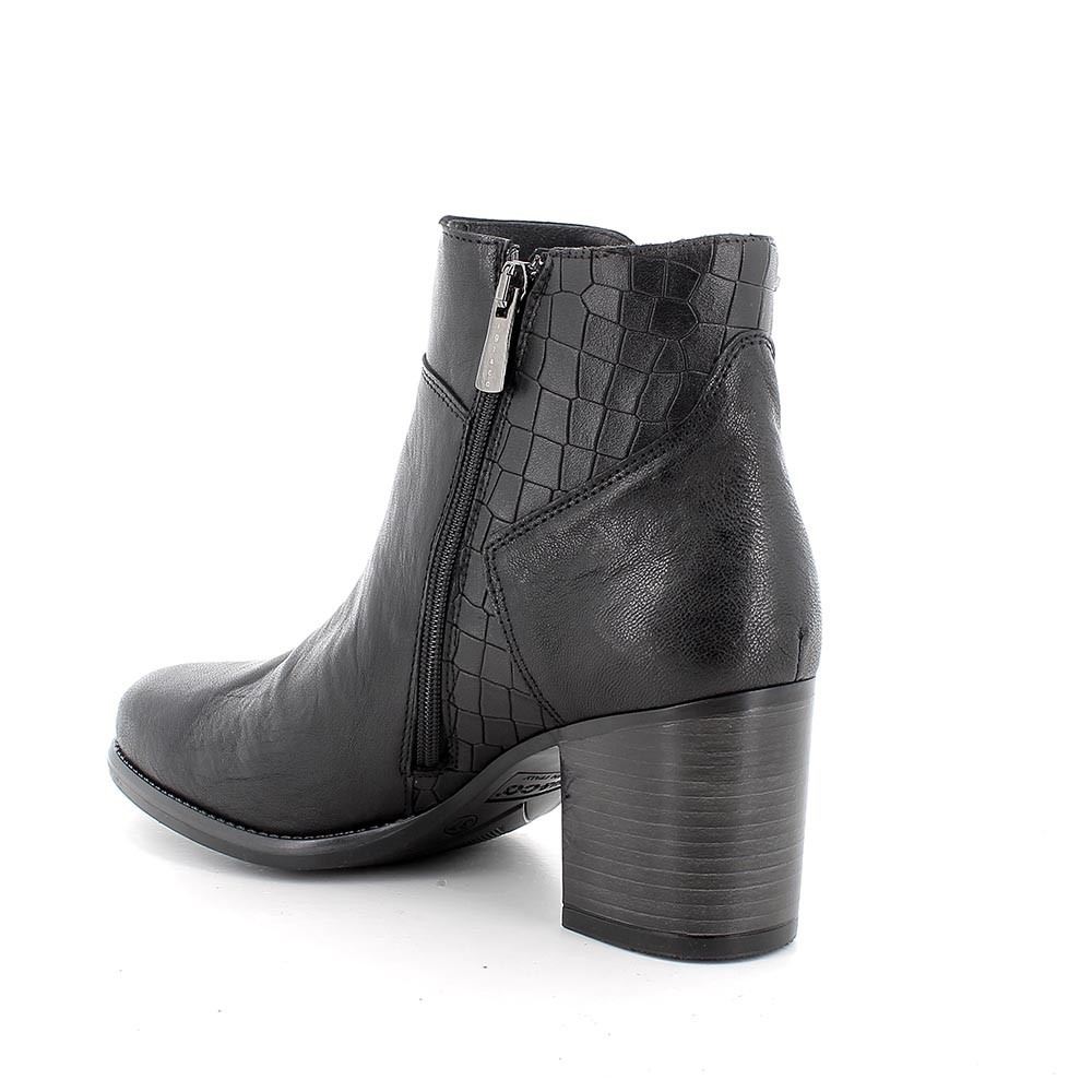 Des bottines élégantes au caractère affirmé, parfaites pour donner du dynamisme et offrir des centimètres. Le talon valorise la silhouette sans renoncer au confort, tandis que la ligne épurée avec des détails ton sur ton les rend polyvalentes et raffinées. Idéales tant pour le bureau que pour une sortie en soirée, elles sont la touche chic qui complète chaque tenue avec style.