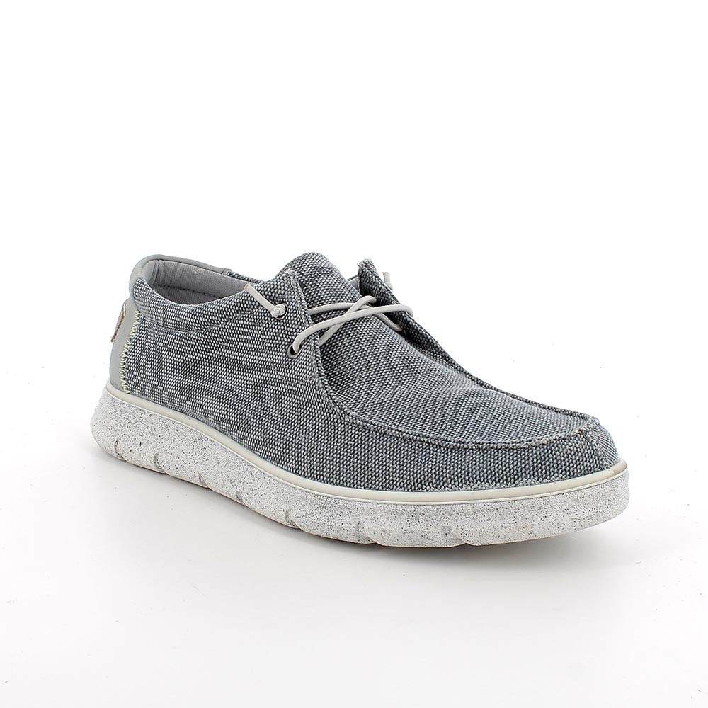 Chaussures à lacets style Wallaby en tissu de coton tant à l'extérieur qu'à l'intérieur. Elles conviennent particulièrement aux hommes à l'esprit libre qui aiment s'habiller de manière informelle et porter leurs chaussures même pieds nus. La semelle est confortable et large pour éviter tout genre de constriction. La bande de roulement est conçue pour favoriser l'adhérence et la flexibilité. La semelle intérieure anatomique est amovible et recouverte de cuir pour garantir transpirabilité et hygiène.