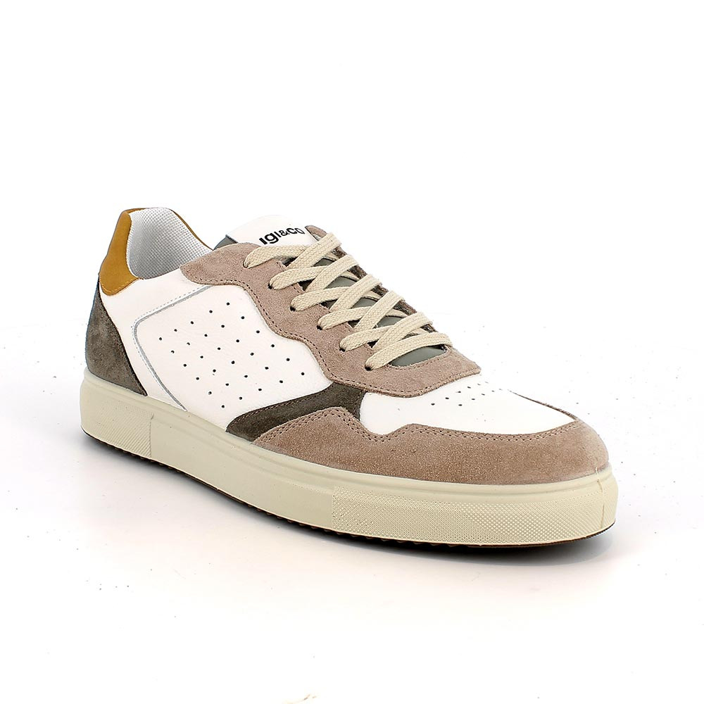 Sneaker pour homme blanc et beige avec lacets