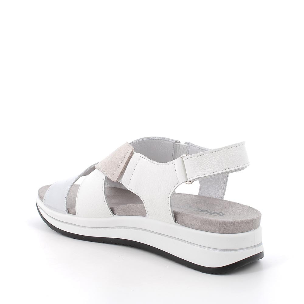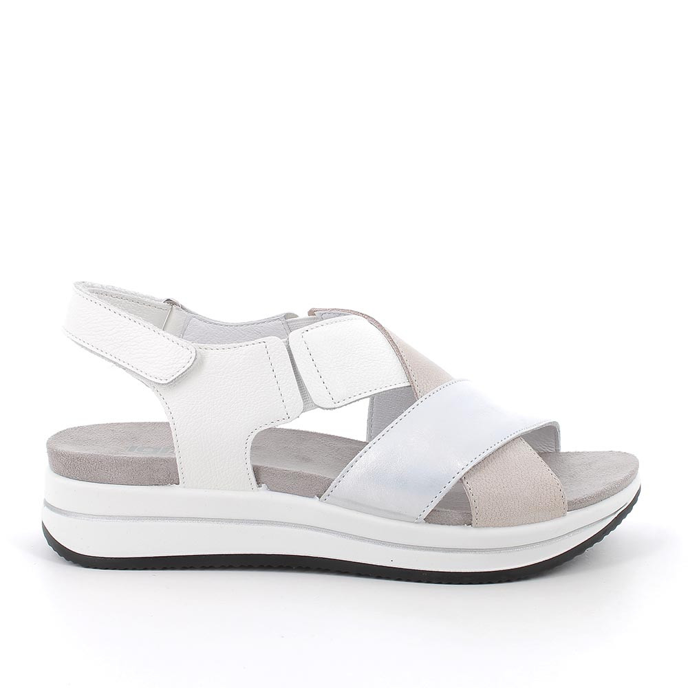 Sandale avec coin pour femme blanc et gris avec velcro