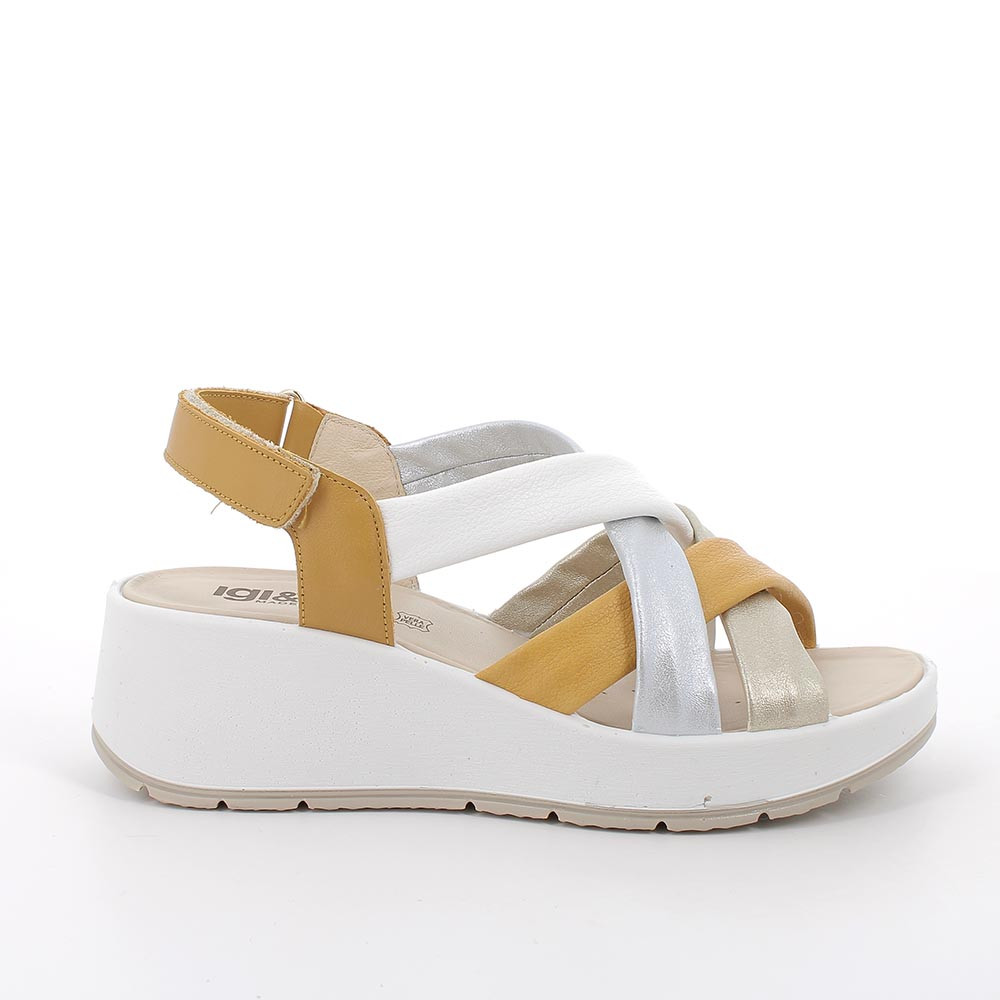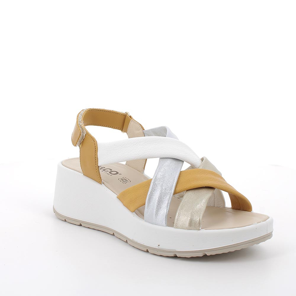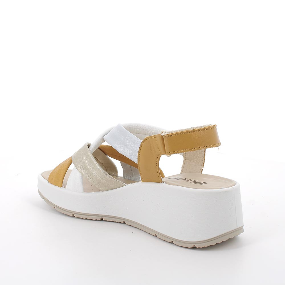 Sandale avec coin pour femme jaune et blanc avec velcro