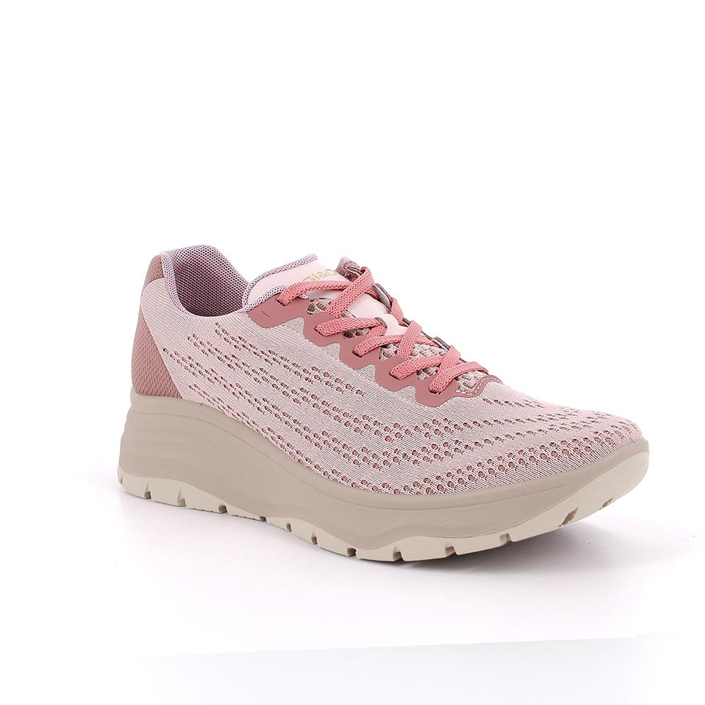 Sneaker avec coin pour femme rose avec lacets