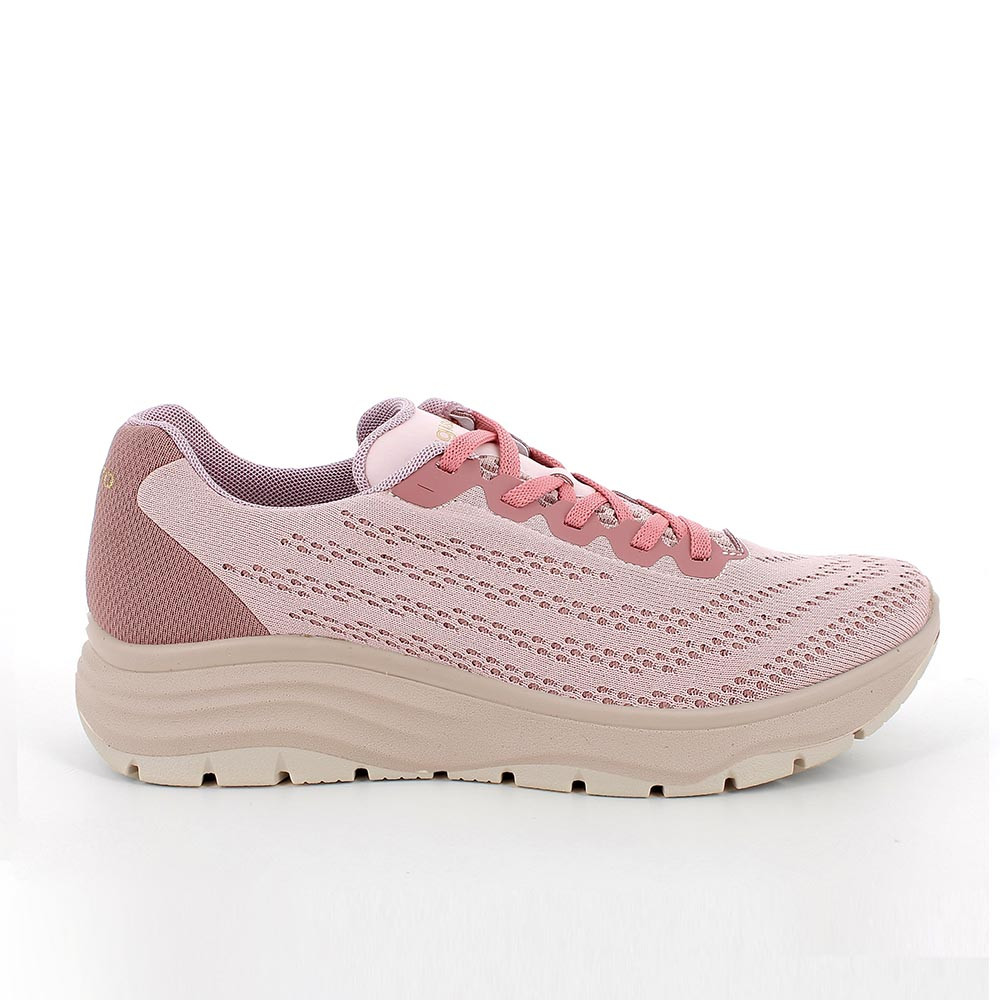 Baskets d’aspect technique fabriquées avec une tige en tissu knit. Le tissage particulier favorise non seulement la transpiration mais constitue également un élément décoratif raffiné. Les trous pour le passage des lacets sont protégés par un film antiusure. La qualité de ces chaussures de sport pour femme est confirmée par la présence d’une semelle intérieure en mousse à mémoire de forme, qui s’adapte parfaitement à la morphologie du pied.